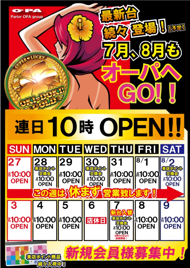 明日 新台入替 新台7機種登場!9時40分より抽選開始です!