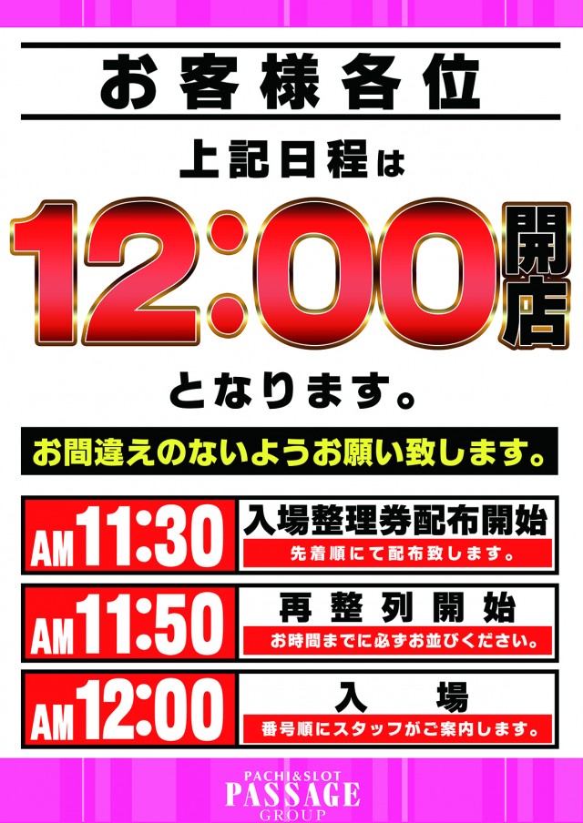 新台入替の前日に[店休日]とさせて頂きます。 |