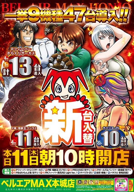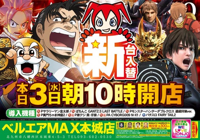 4円パチンコ264台 1円パチンコ176台 20円スロット325台 |