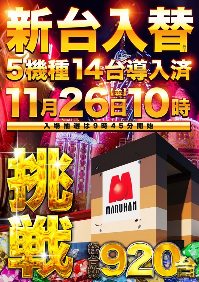 11月26日(金)新台入替完了!最新機種も導入済!