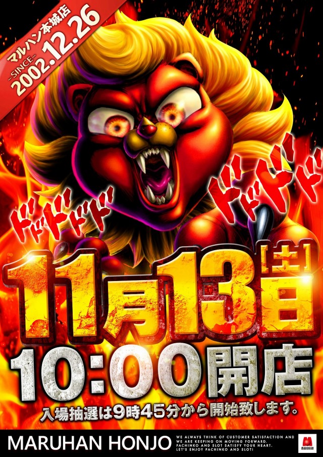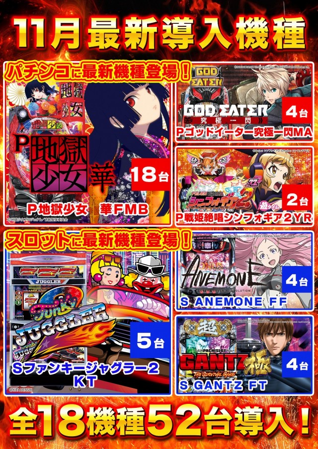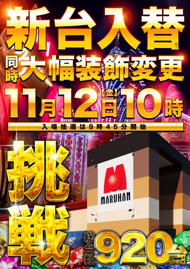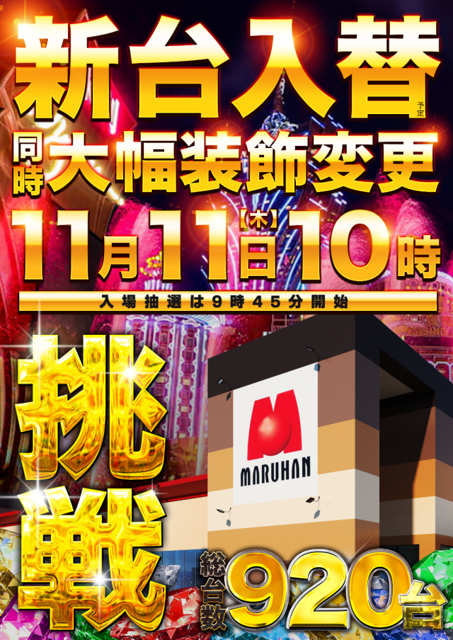 11月11日(木)新台入替! 10時開店!!!