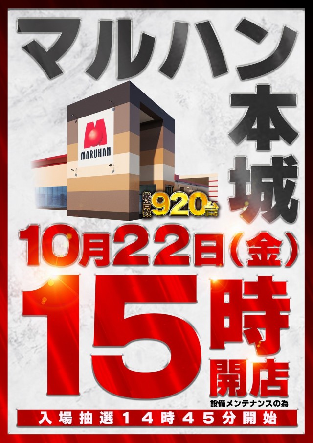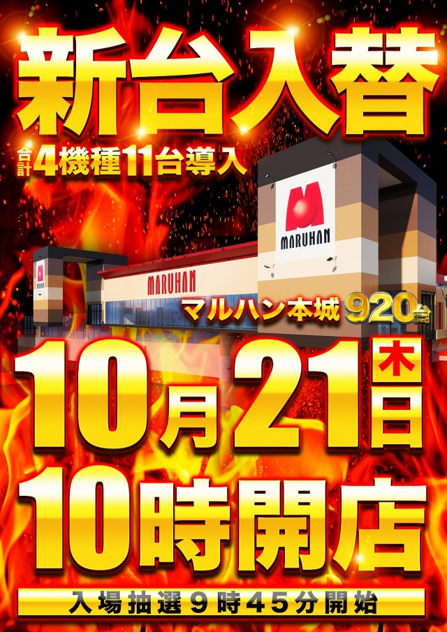 10月21日(木)[新台入替]10時開店!!!