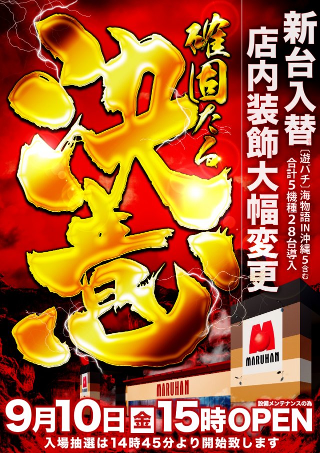 9月9日(木)≪新台入替≫≪店内装飾大幅変更≫10時開店!