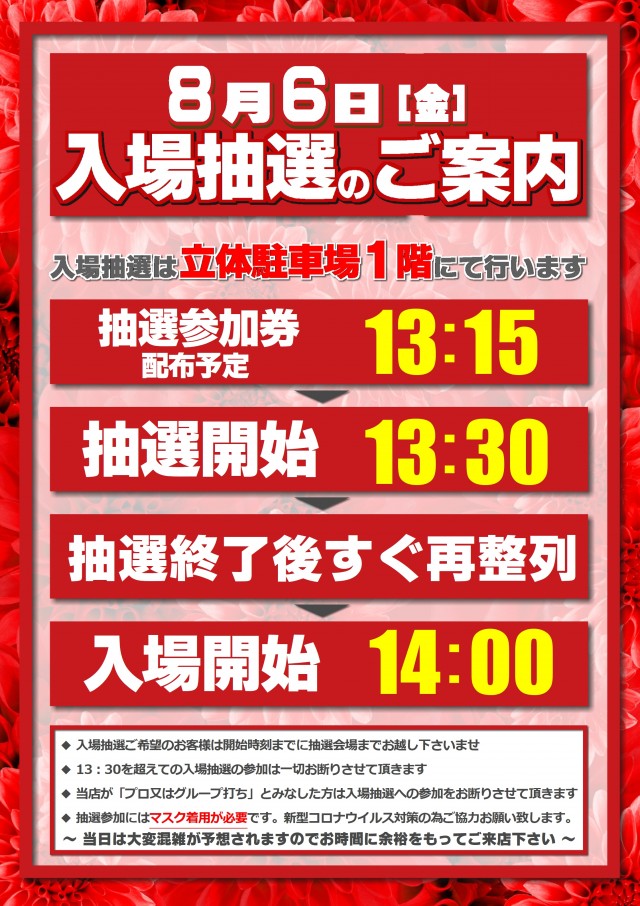 8月5日(木)北九州マルハン合同新台入替!10時開店!