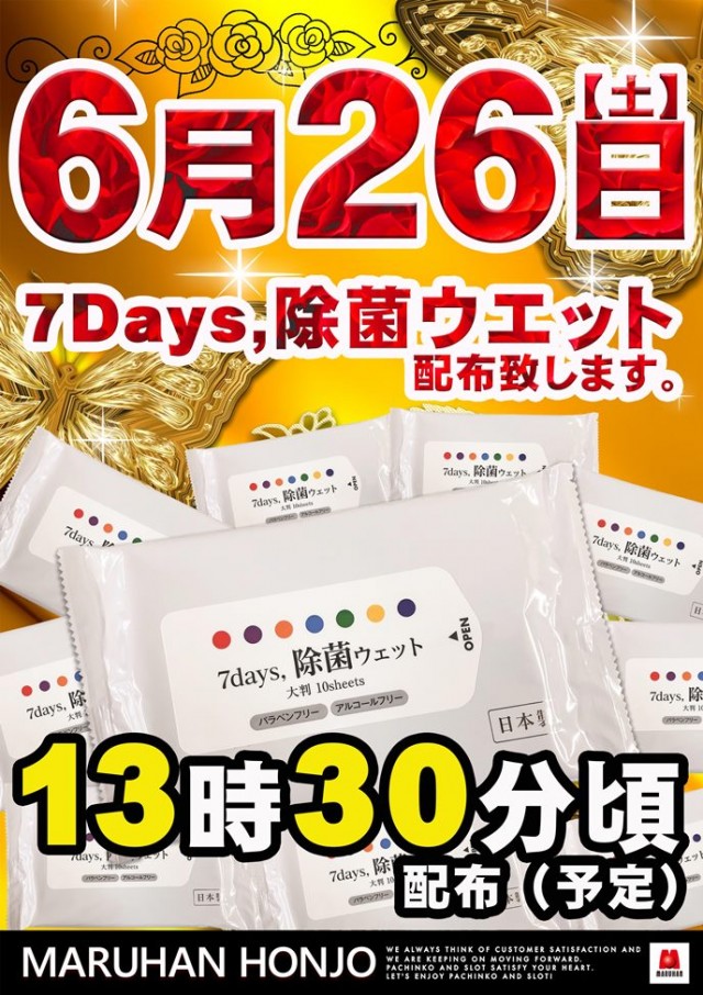 本6月26日(土)『7days 除菌ウェット』配布予定です!