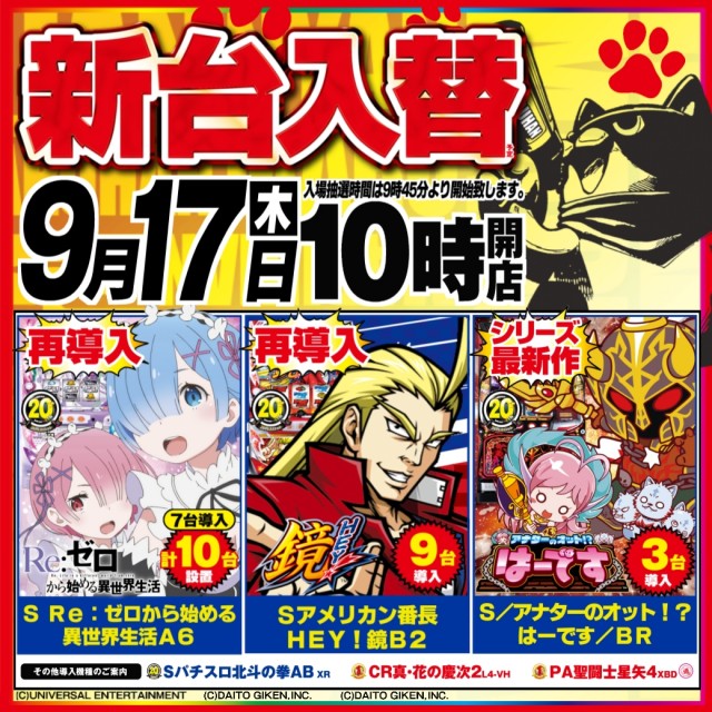 本日 新台入替 10時開店