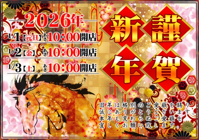 ★ベガ小嶺店★本日1月1日【元旦】朝10時開店!