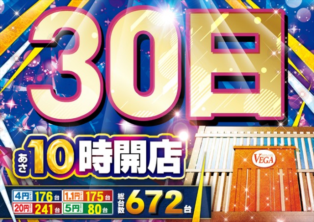 ★ベガ16周年★本日10月30日【木】 朝10時開店!