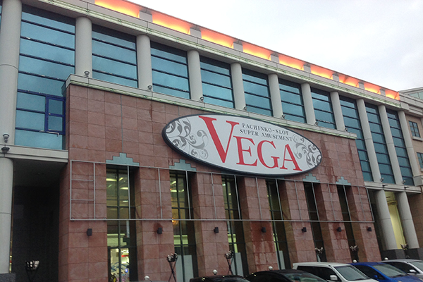 大きな「VEGA」の文字が特徴的な外観とホテルのような豪華さが感じられる内装も魅力的なホールだ。