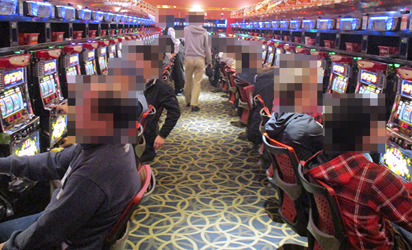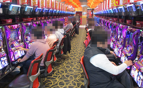 大勢のプレイヤーが遊技を楽しむ店内の雰囲気は明るく、いくつもの場所で笑顔がみられた。