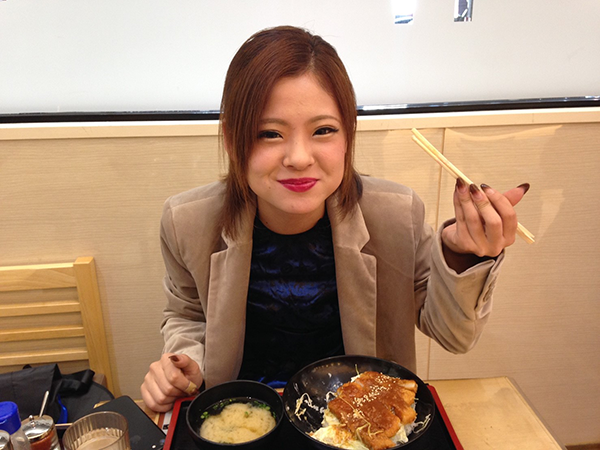 琴美ちゃんは味噌カツをモグモグ…(*´ε`*)