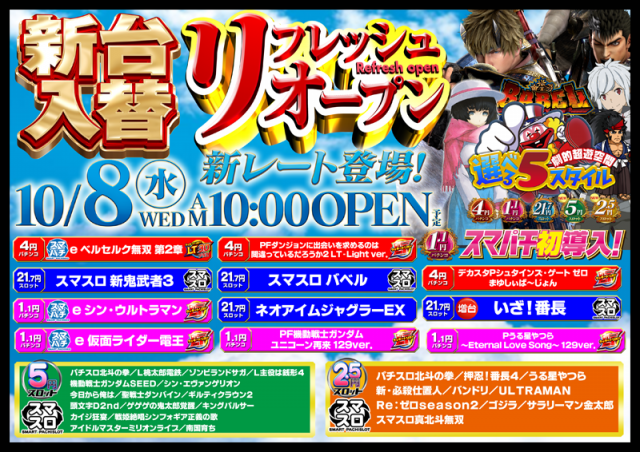 パチンコ・スロット全台分煙ボード、パチンコ手置きスタンド設置!!