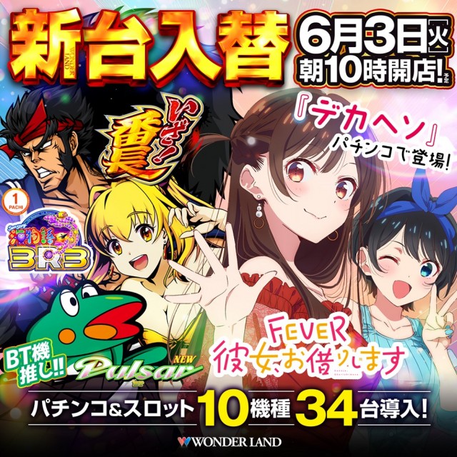 明日 6月3日(火)【新台入替】あさ10時開店!