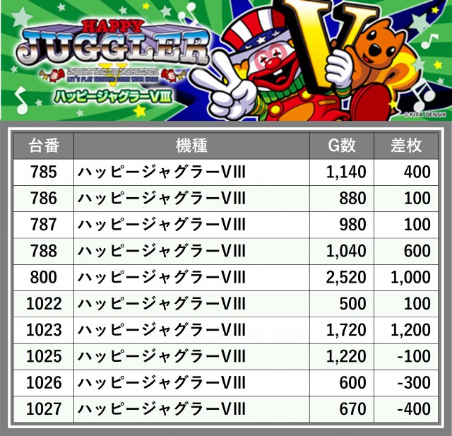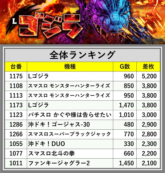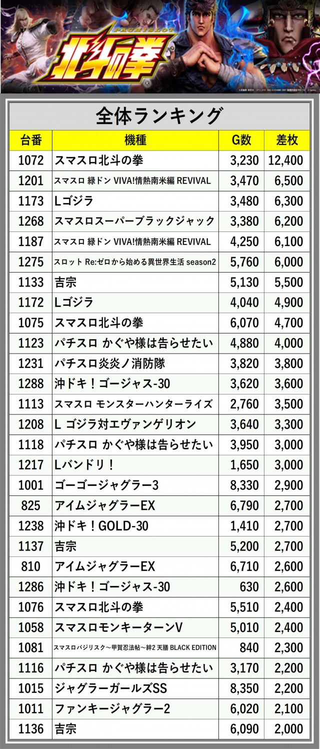 厳選された取材対象機種をはじめ、その他スロット全体から好記録が飛び出した!プレイヤーが楽しんだ1日を下記データにて振り返ってみて欲しい。