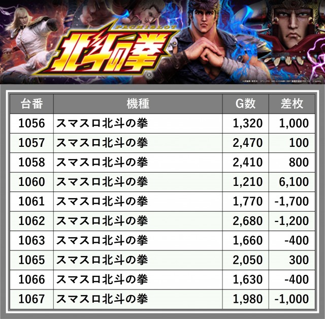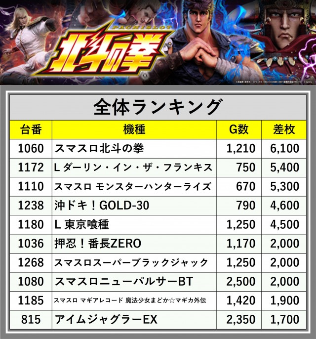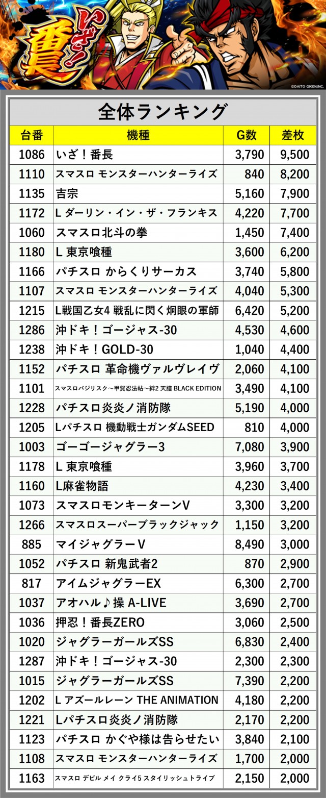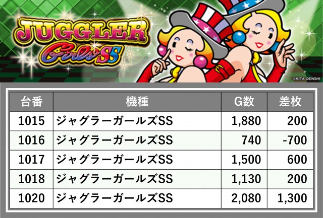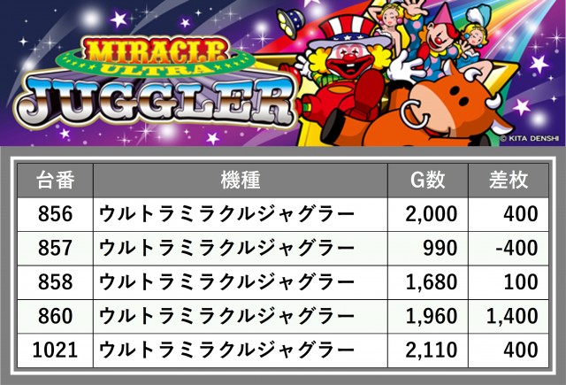 厳選された取材対象機種をはじめ、その他スロット全体から好記録が飛び出した!プレイヤーが楽しんだ1日を下記データにて振り返ってみて欲しい。