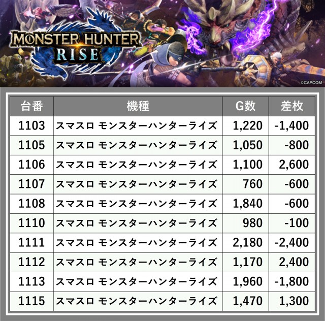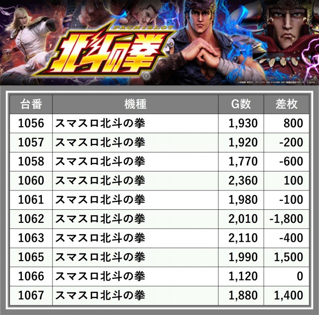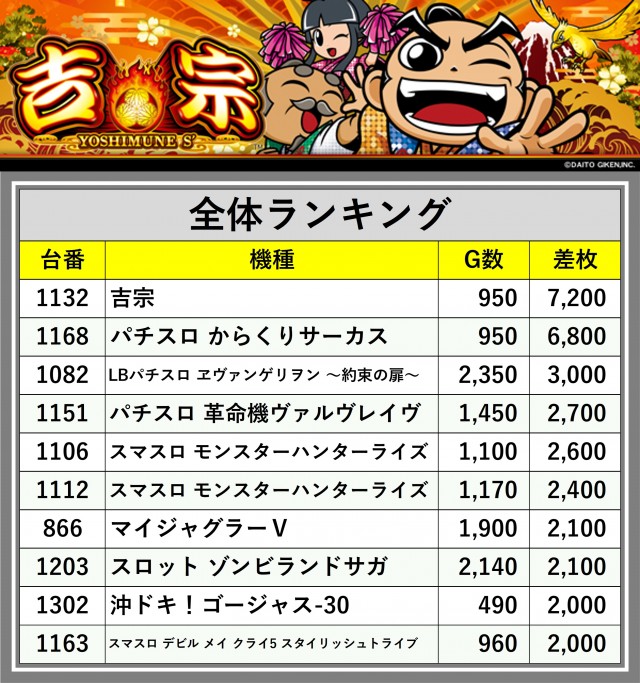厳選された取材対象機種をはじめ、その他スロット全体から好記録が飛び出した!プレイヤーが楽しんだ1日を下記データにて振り返ってみて欲しい。