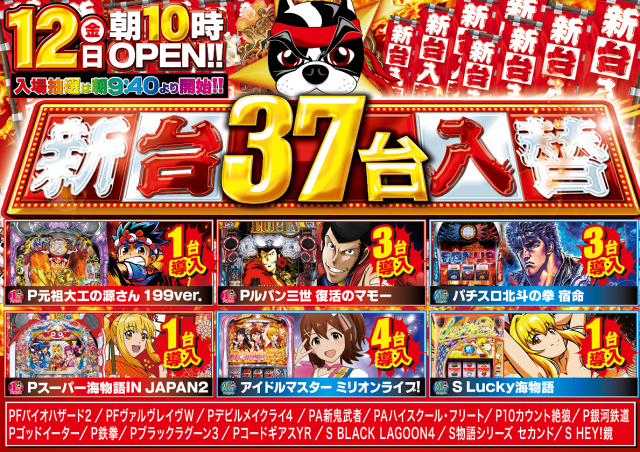 本日3月12日金曜日【新台入替】朝10時開店!!