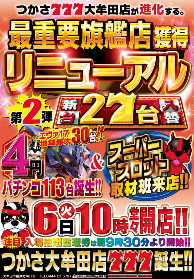 1月6日(火)☆新台入替☆朝10時開店!!
