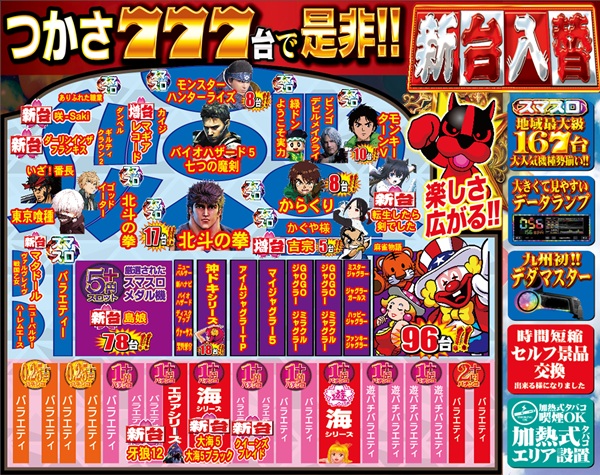 明日9日(火)は新台入替準備の為、店休日とさせて頂きます