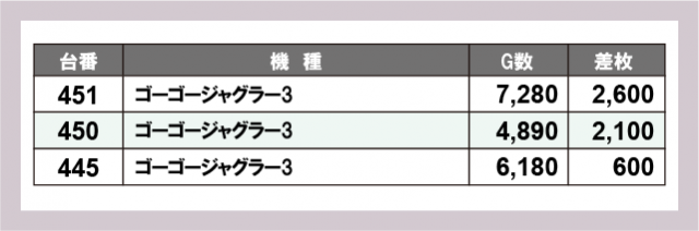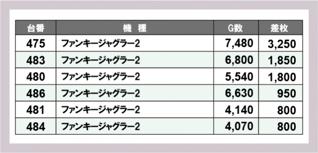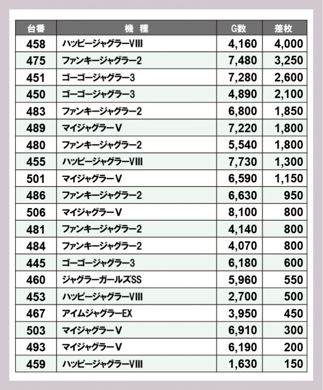 ジャグラー差枚ランキング
