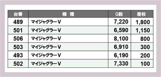 ※差枚数順に掲載しています