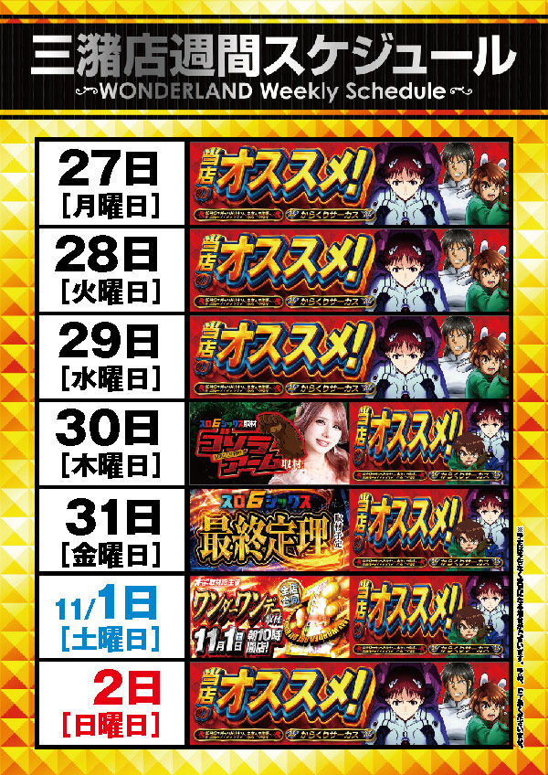10月11日ワンダーランド全店朝10時OPENです!😊
