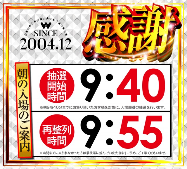朝の入場順番を決める抽選は9:40までとなっております。 |