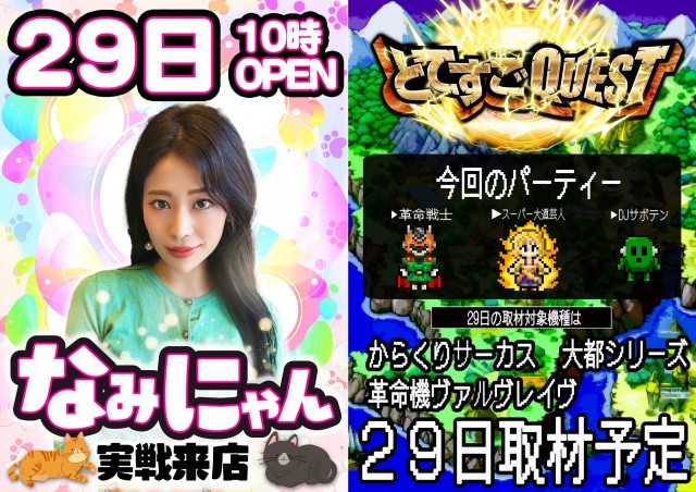 本日 29日 なみにゃん実践 とてすご取材!10時OPEN🌈