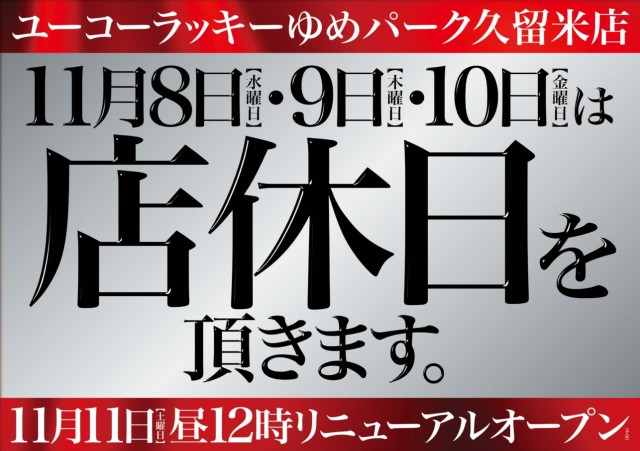 ユーコーラッキー37ゆめパーク久留米店のお知らせ一覧