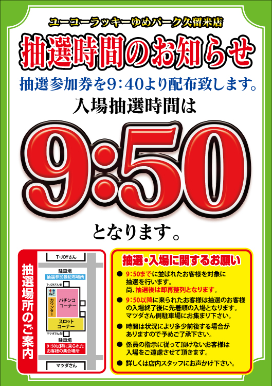 9時10分より抽選参加券配布 9時40分より抽選開始 |