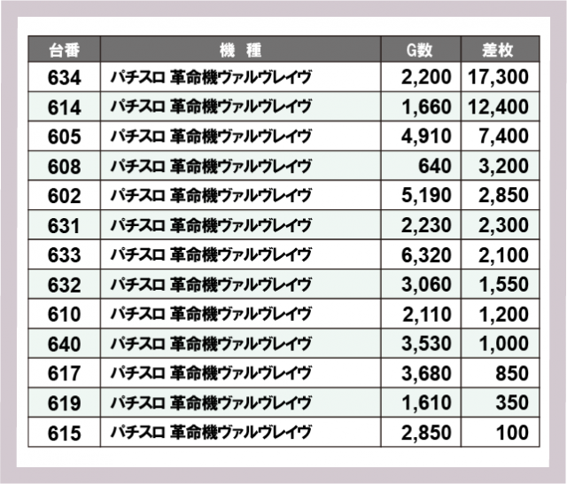 ヴァルヴレイヴ差枚ランキング