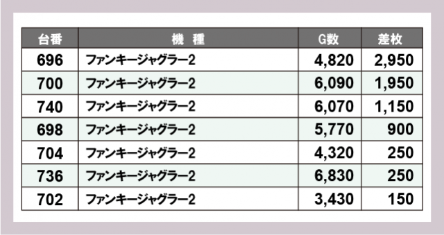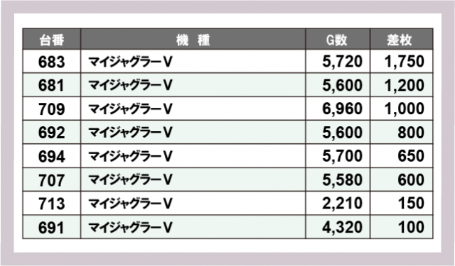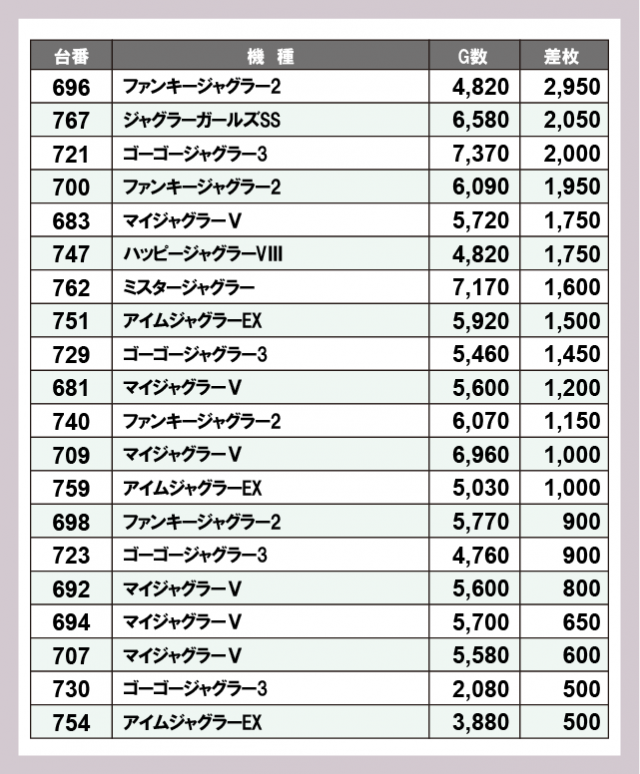 ジャグラー差枚ランキング