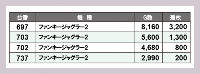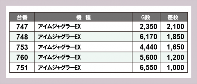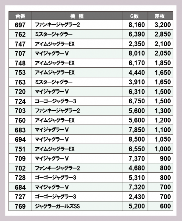 ジャグラー差枚ランキング