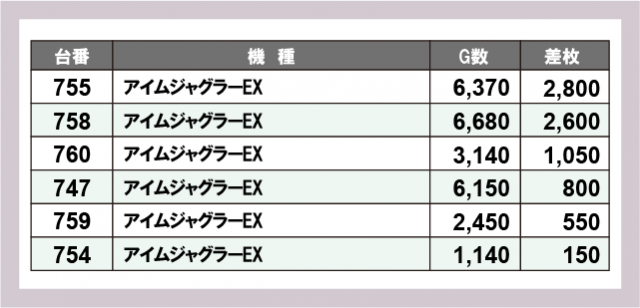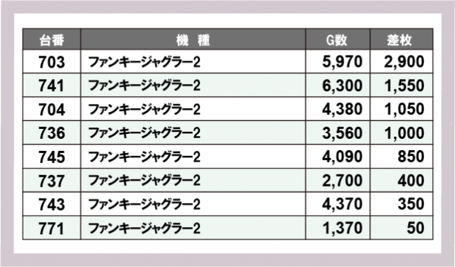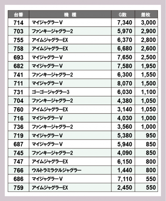 ジャグラー差枚ランキング