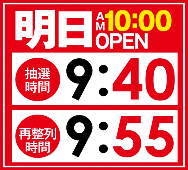 ☆明日20日【朝10時開店】抽選締切9時40分