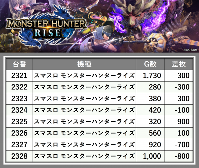 厳選された取材対象機種をはじめ、その他スロット全体から好記録が飛び出した!プレイヤーが楽しんだ1日を下記データにて振り返ってみて欲しい。