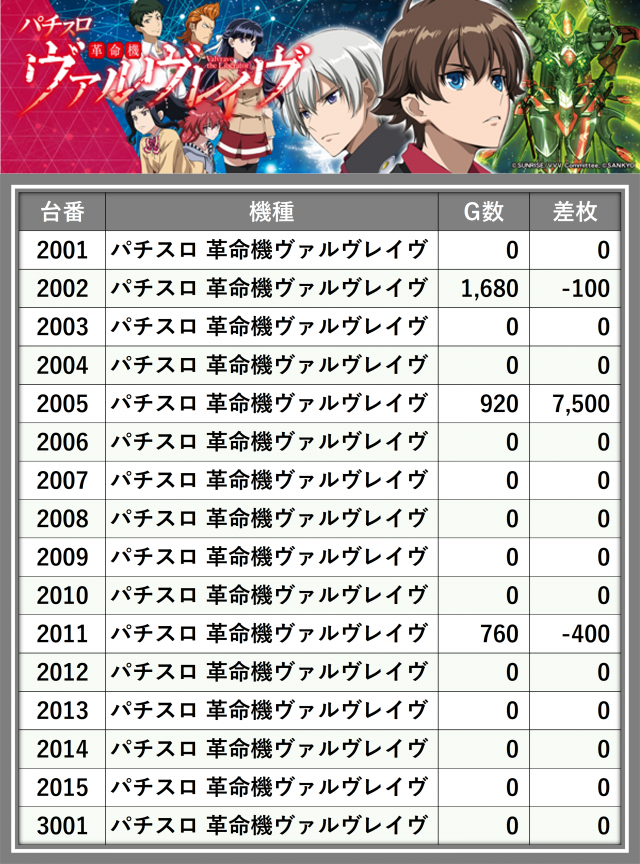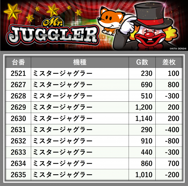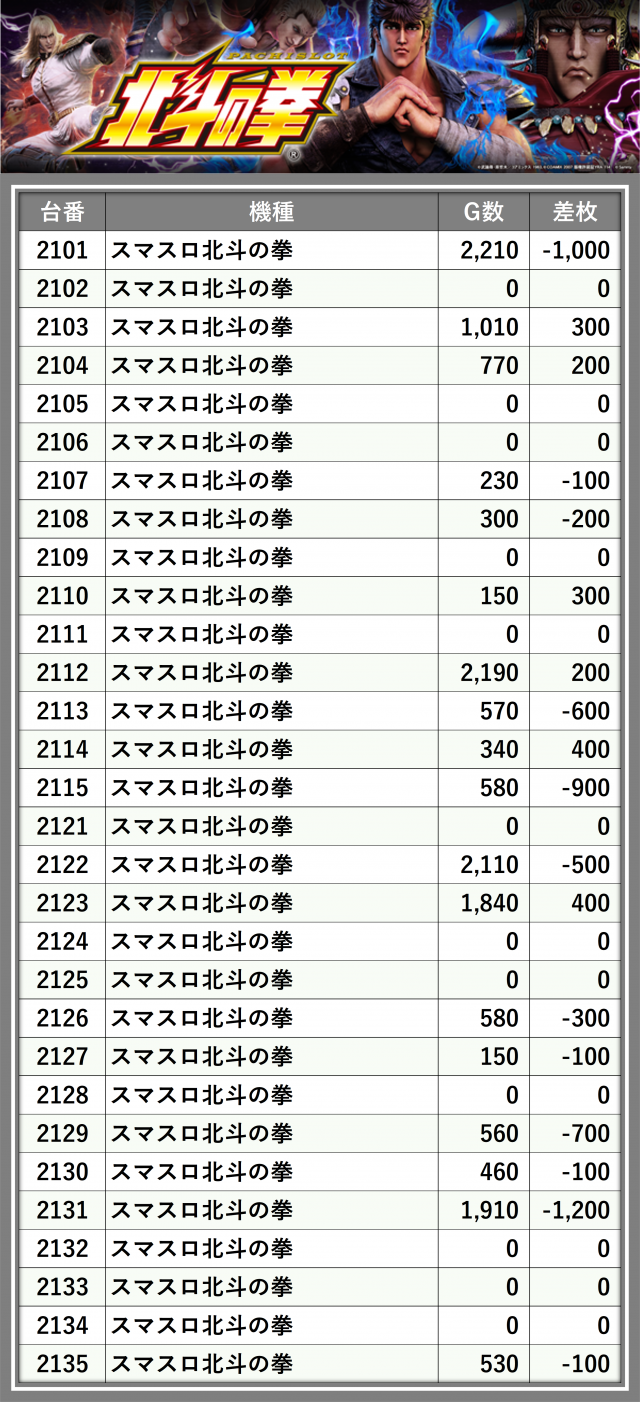※台番順に掲載しています