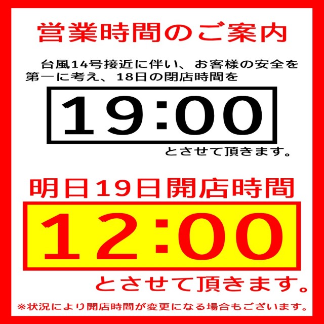 明日の営業時間のお知らせ