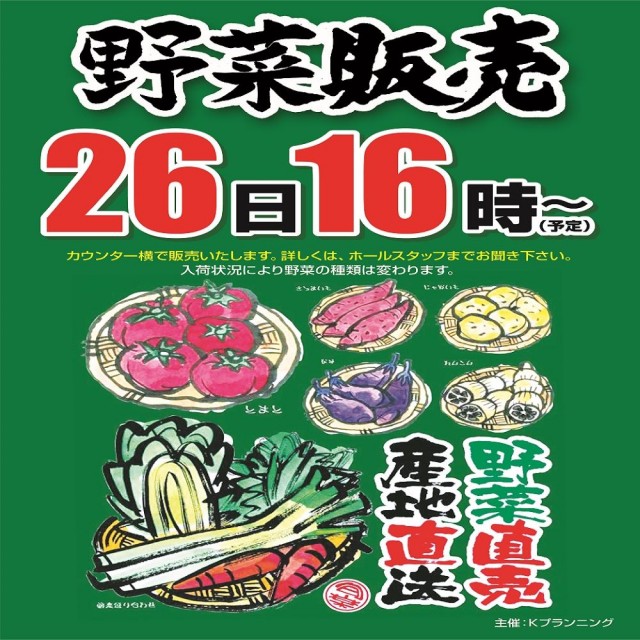本日朝10時開店!ファン感最終日です!野菜販売もあります!