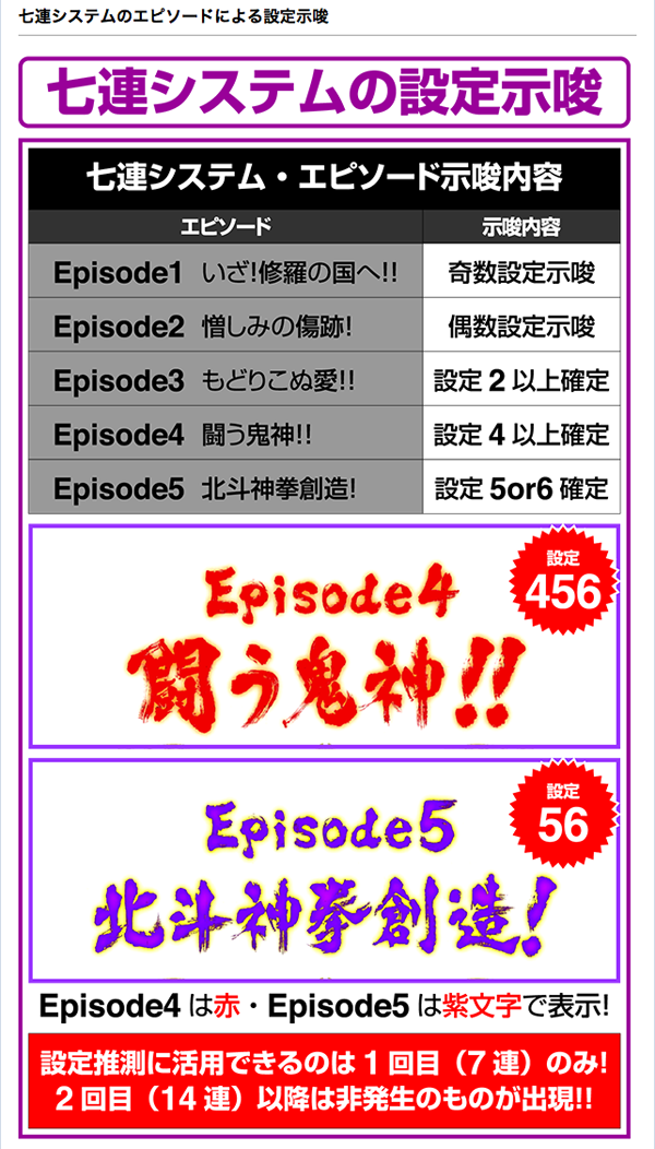 ▼「パチスロ北斗の拳 修羅の国篇」設定推測ポイント▼