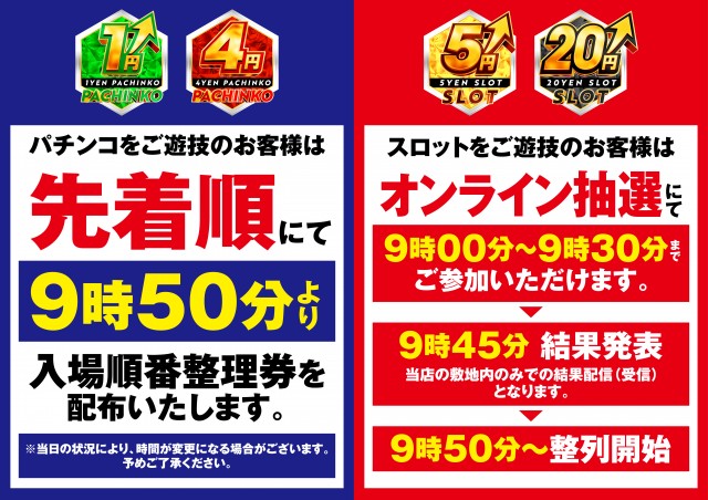 抽選整理券配布9:15~9:30/入場抽選時間9:30~