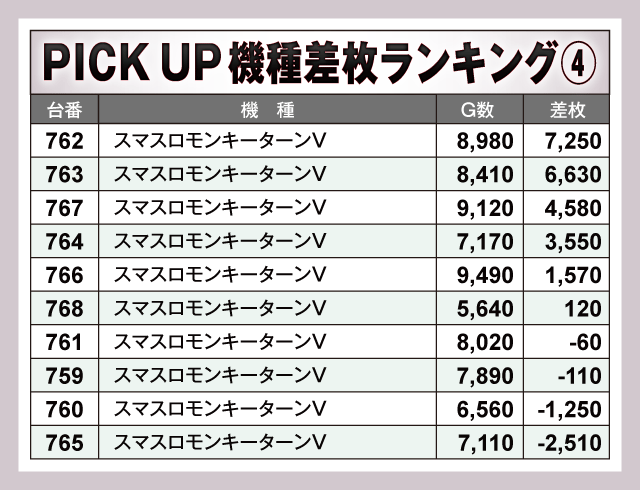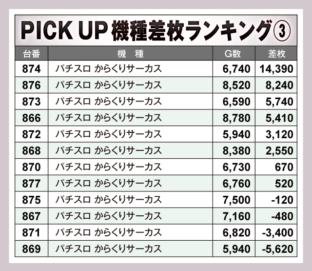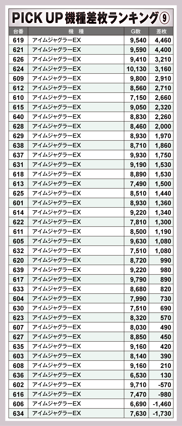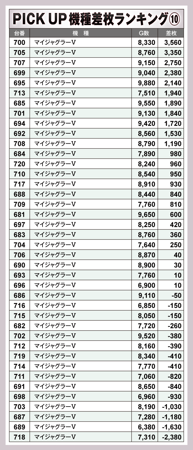 ※差枚数順に掲載しています。