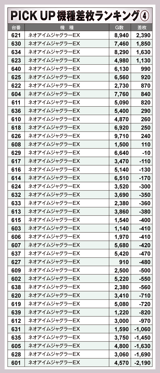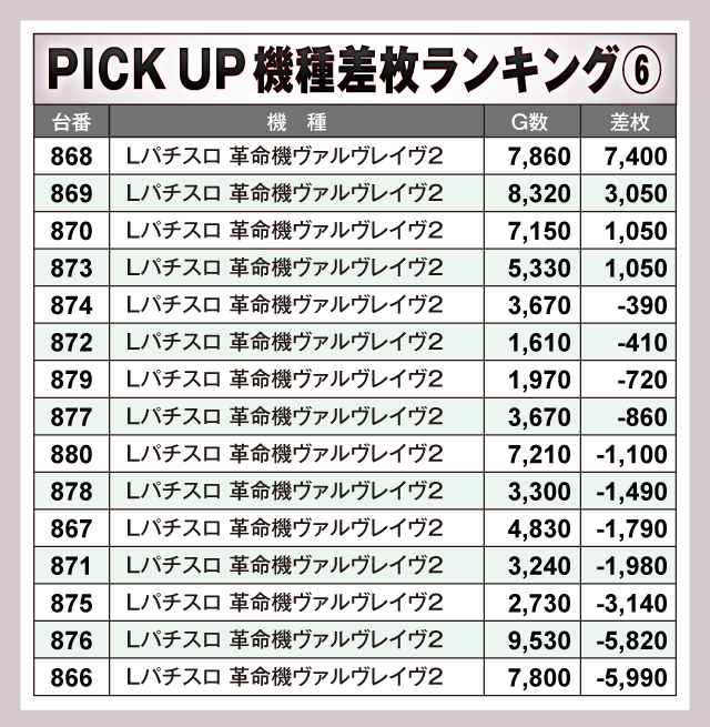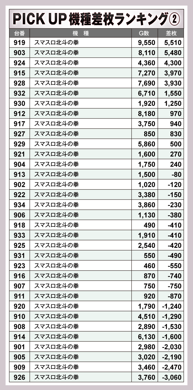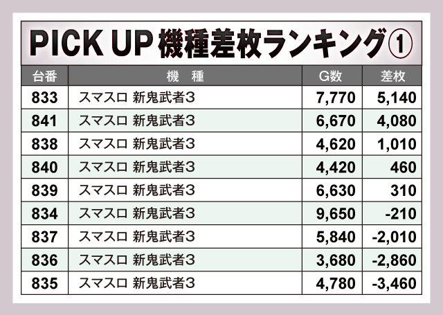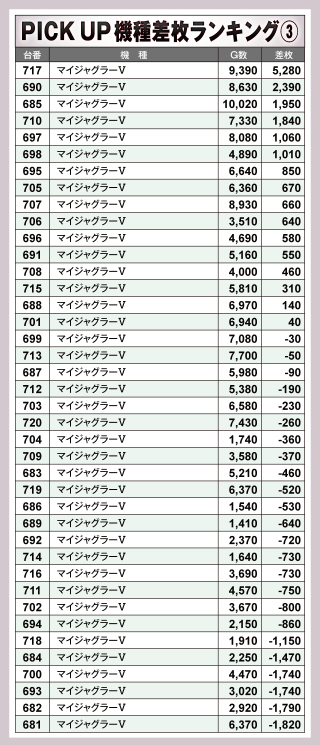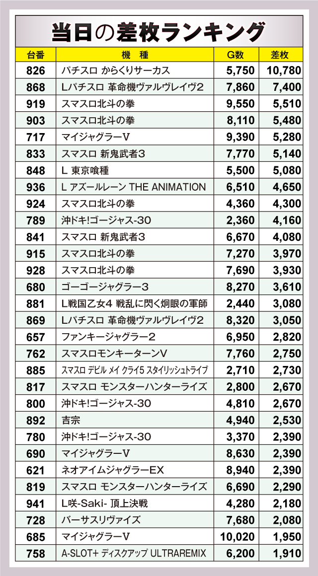 ※差枚数順に掲載しています。