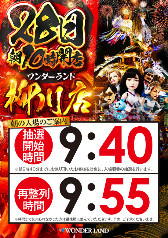 9/8 ワンダーランド柳川店★ 十時開店★抽選9:40