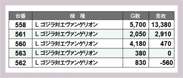 ※差枚数順に掲載しています
