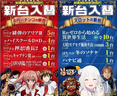 本日12日(金) 新台入替(予定)10時OPEN