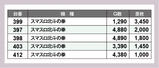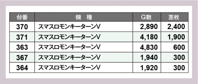 ※差枚数順に掲載しています