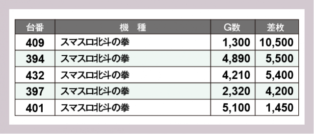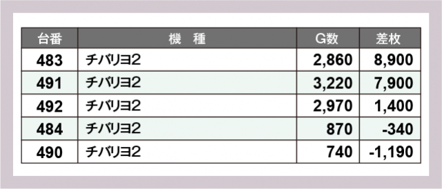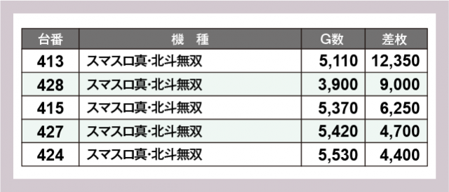 ※差枚数順に掲載しています