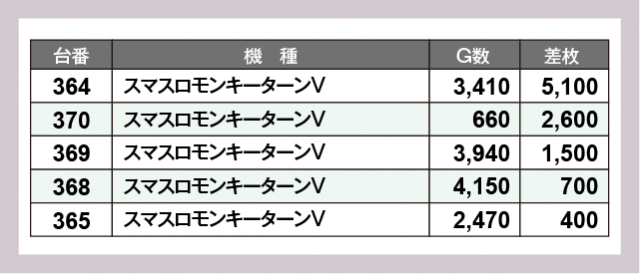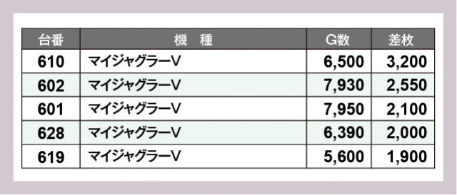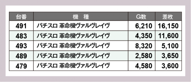 ※差枚数順に掲載しています
