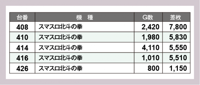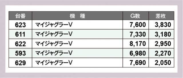 ※差枚数順に掲載しています